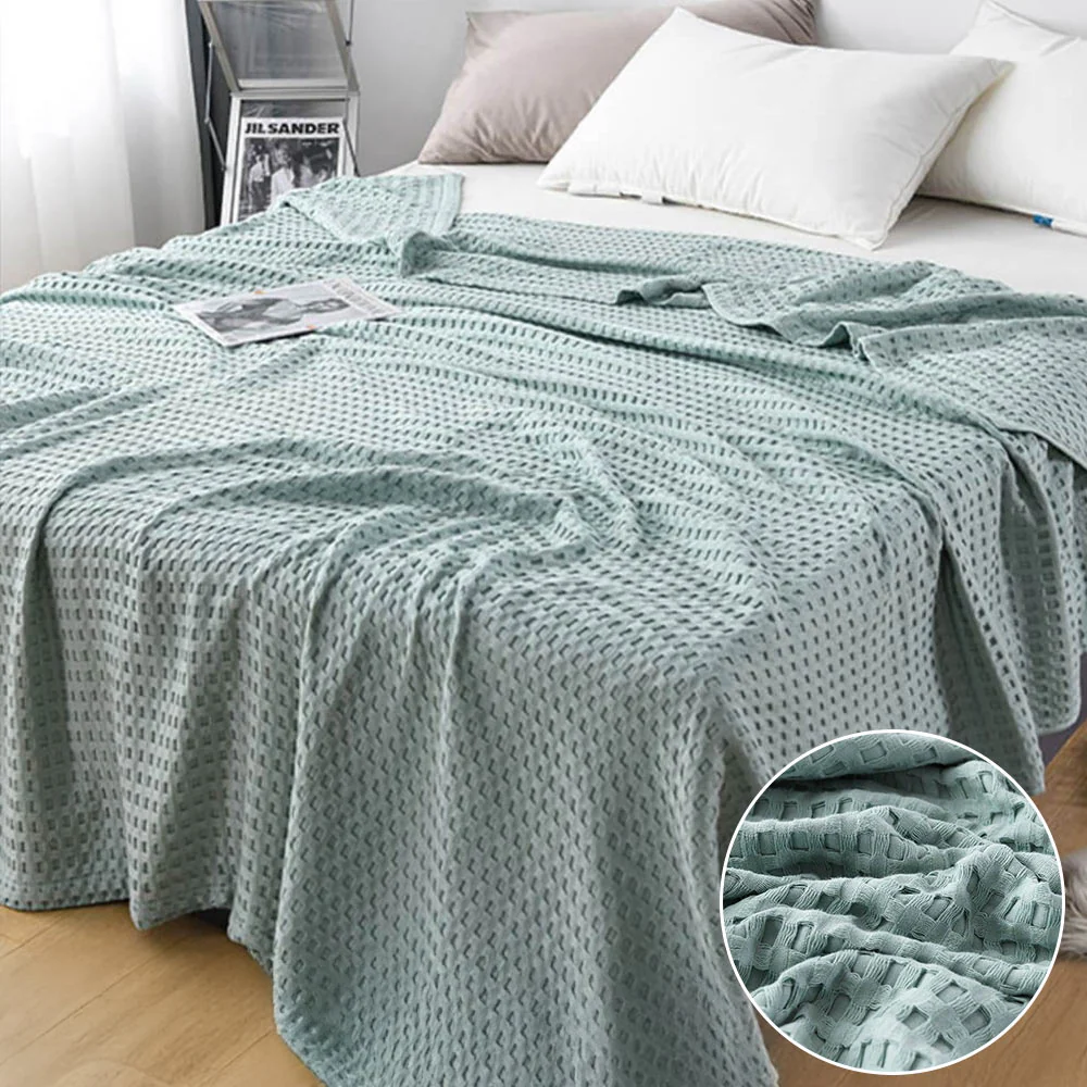 All-Season Lightweight Breathable Cotton Waffle Throw Blanket for Pets & People